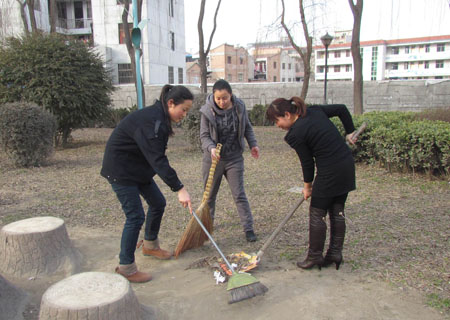 路義務(wù)打掃街道衛(wèi)生,清洗街道護(hù)欄,并對就近的公交站點(diǎn)進(jìn)行了擦洗。