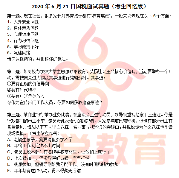 6月21日國稅系統(tǒng)面試出現(xiàn)4人一組